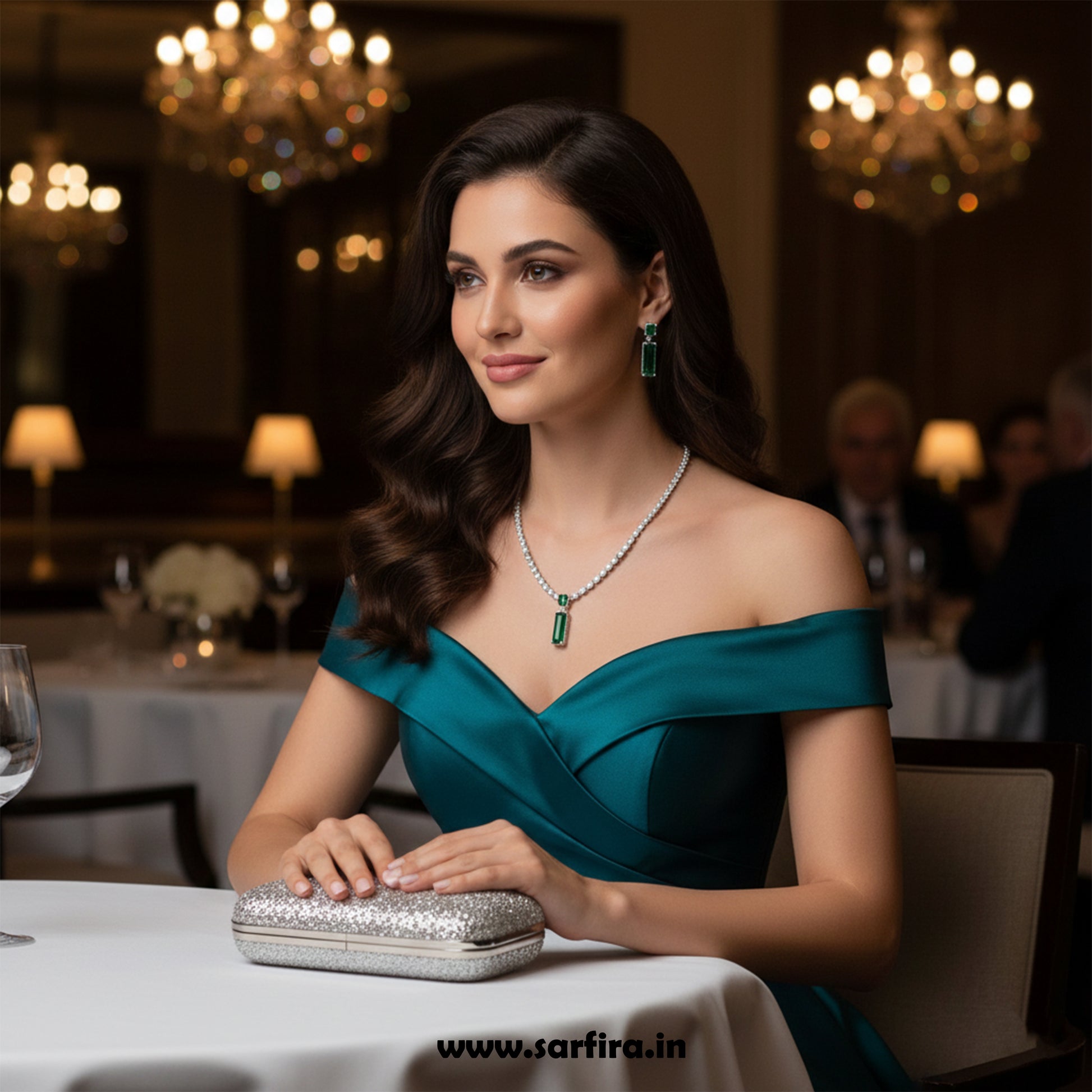| Main Stones | Green Simulated Gemstones (Tear-drop and Rectangle) |