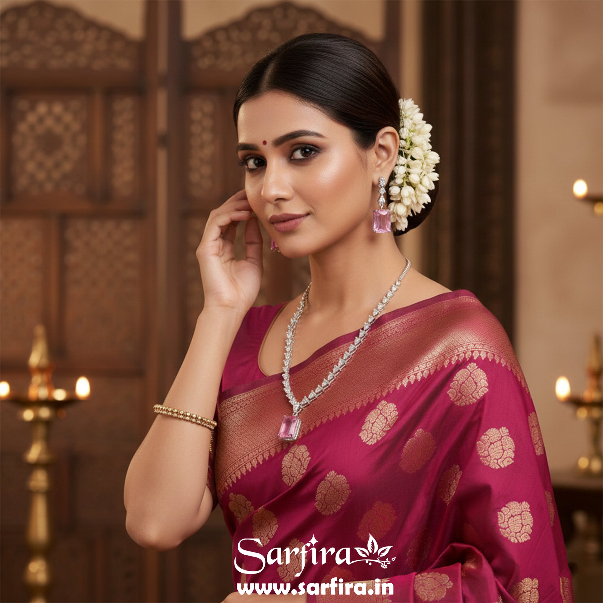 | Stone Type | Simulated Gemstone (Light Pink) and American Diamond (CZ) |