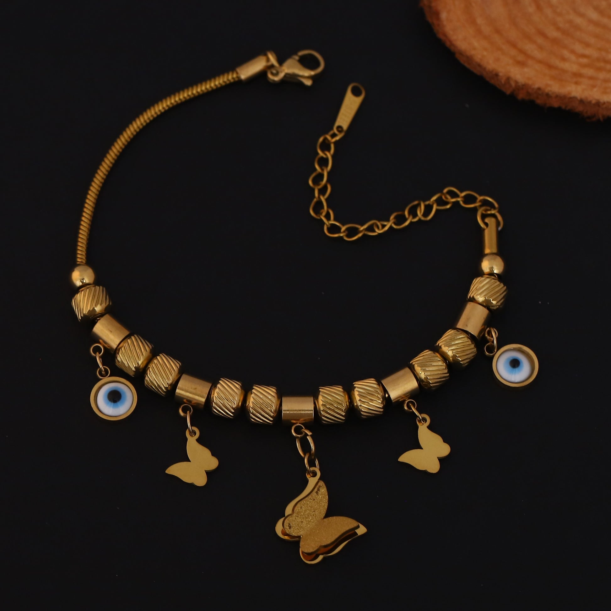 Gold Charm Bracelet with Evil Eye & Butterfly Motifs