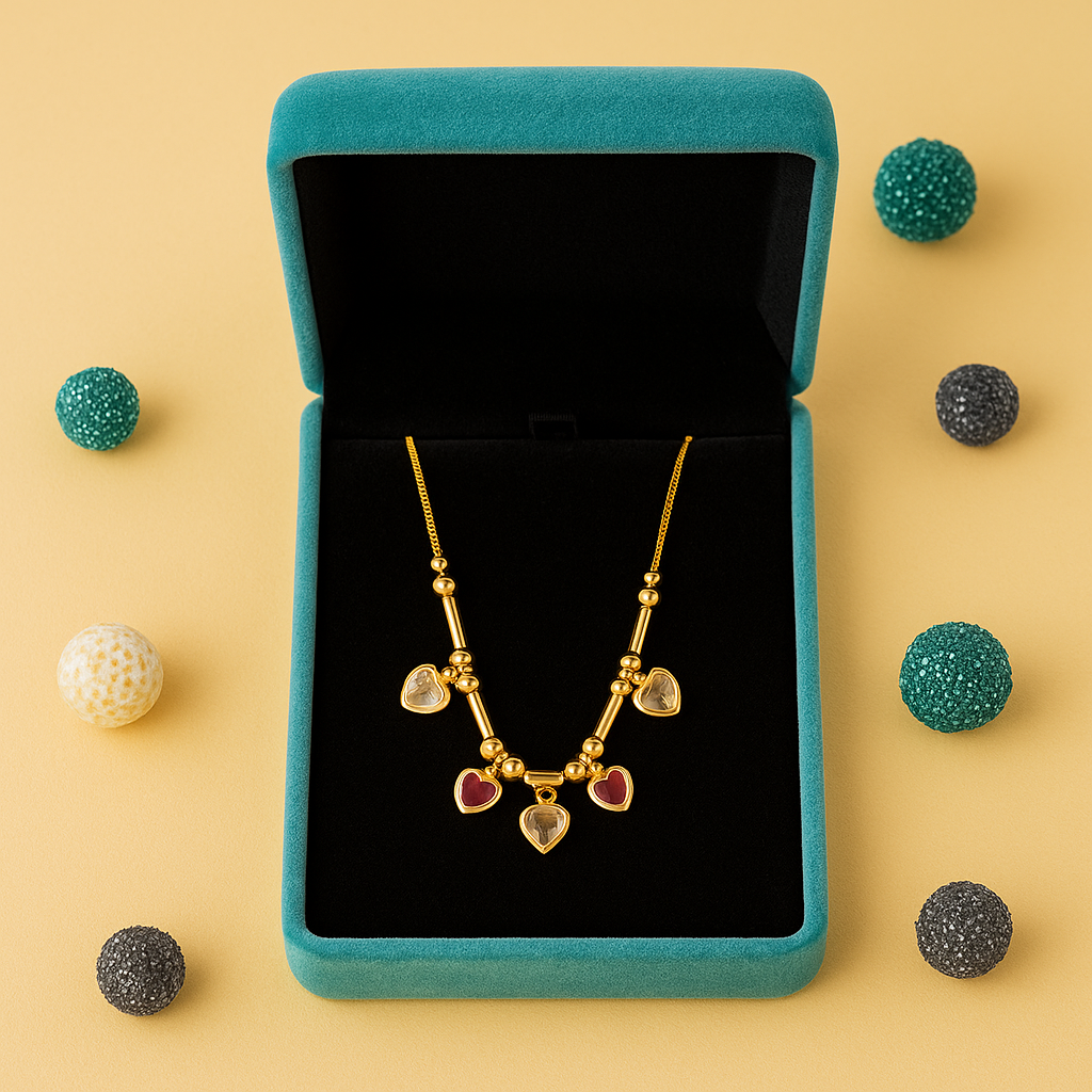 Heart Charm Multicolor Stone Chain Necklace