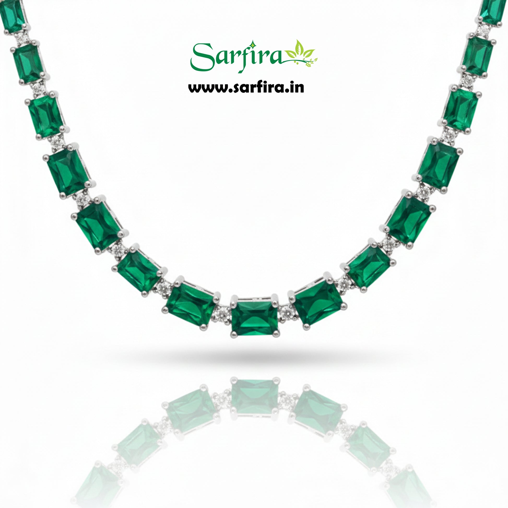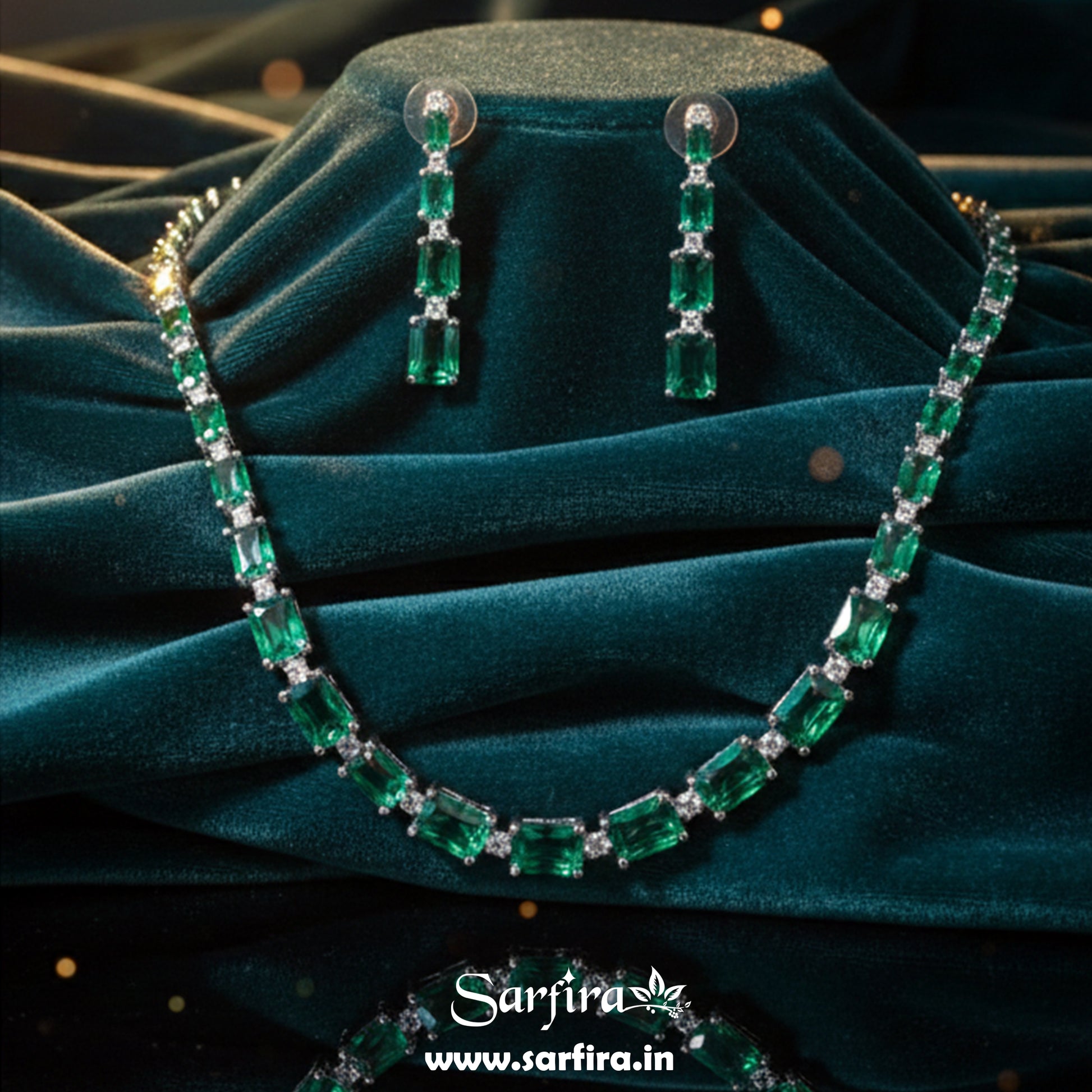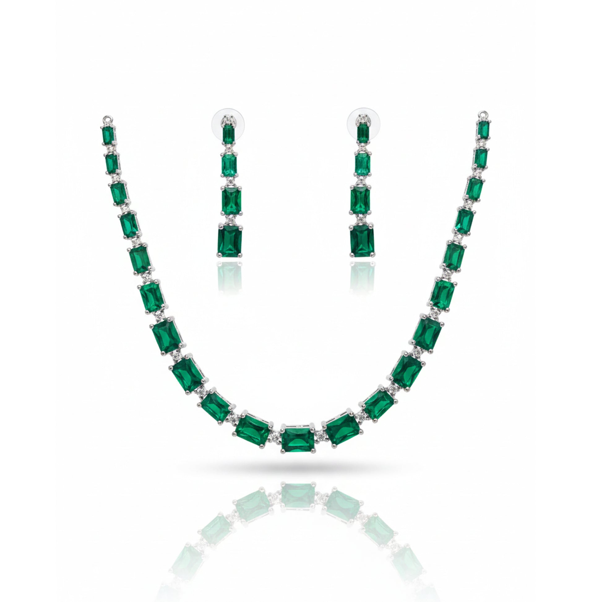 This glamorous green set is a classic, high-fashion statement piece. The rectangular stones give a sophisticated, regal look, perfect for evening wear, galas, or special formal occasions.