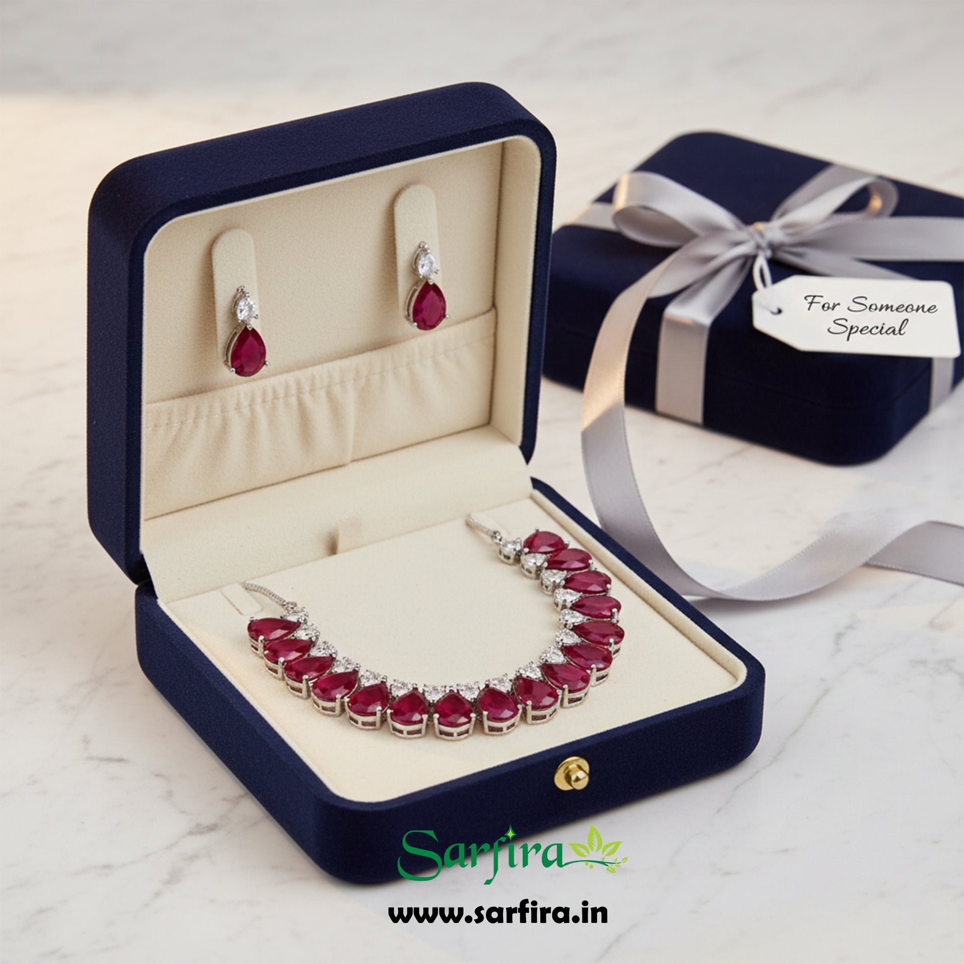 | Stone Type | Simulated Gemstone (Red) and American Diamond (CZ) |