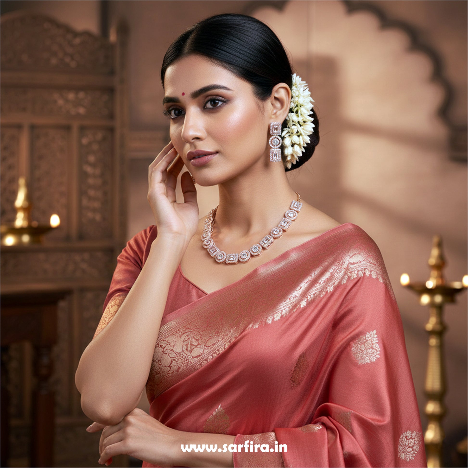 | Main Stones | Clear American Diamond (CZ) stones (Round and Square) |
