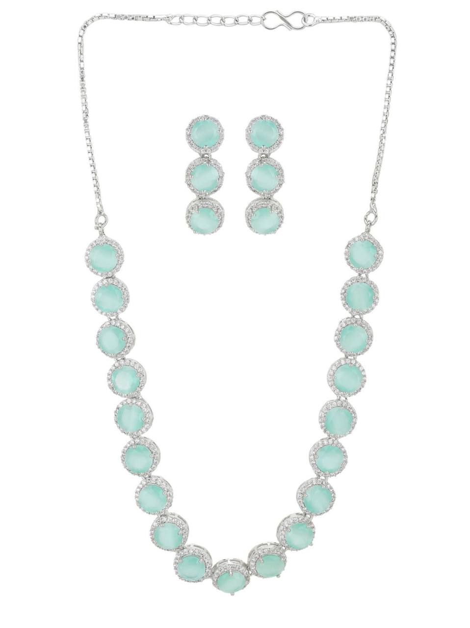 Mint Green Stone Necklace Set with Earrings – Wedding & Party Jewelry