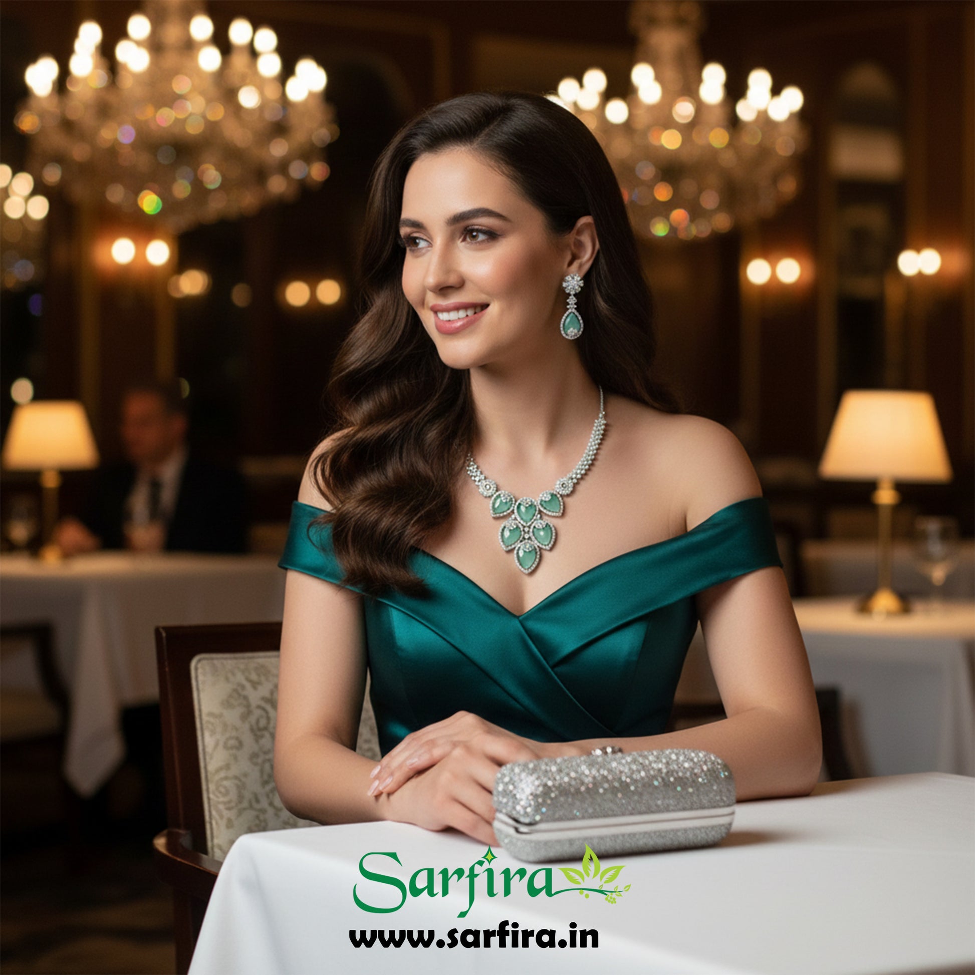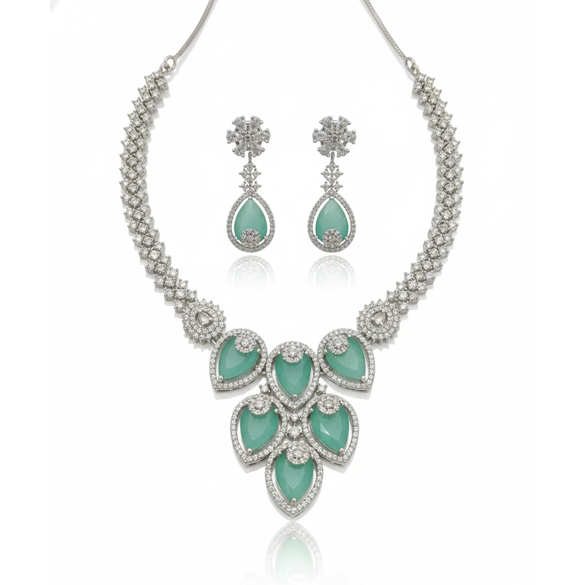 Pista Green Crystal Bridal Necklace Set for Women – Wedding & Party Jewelry