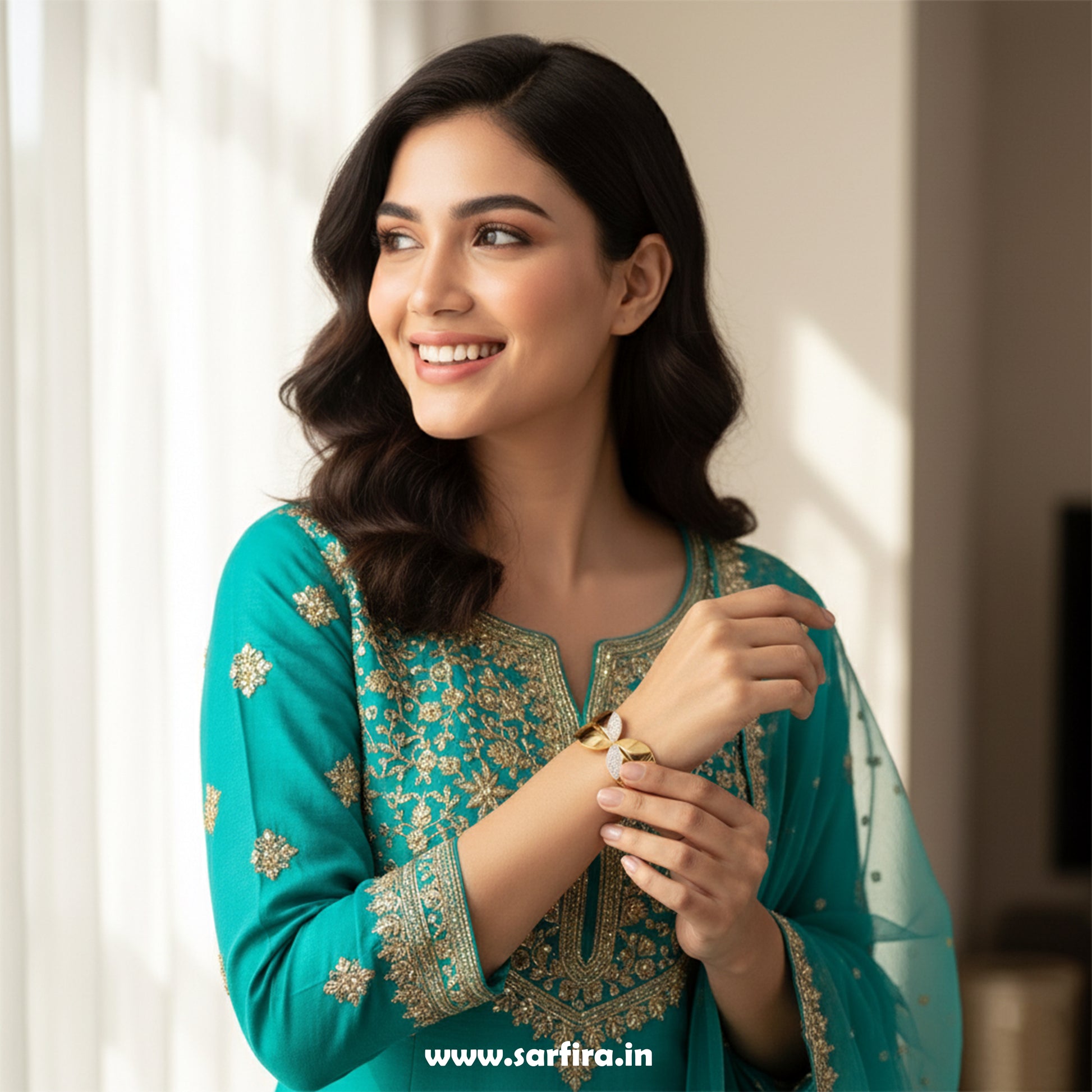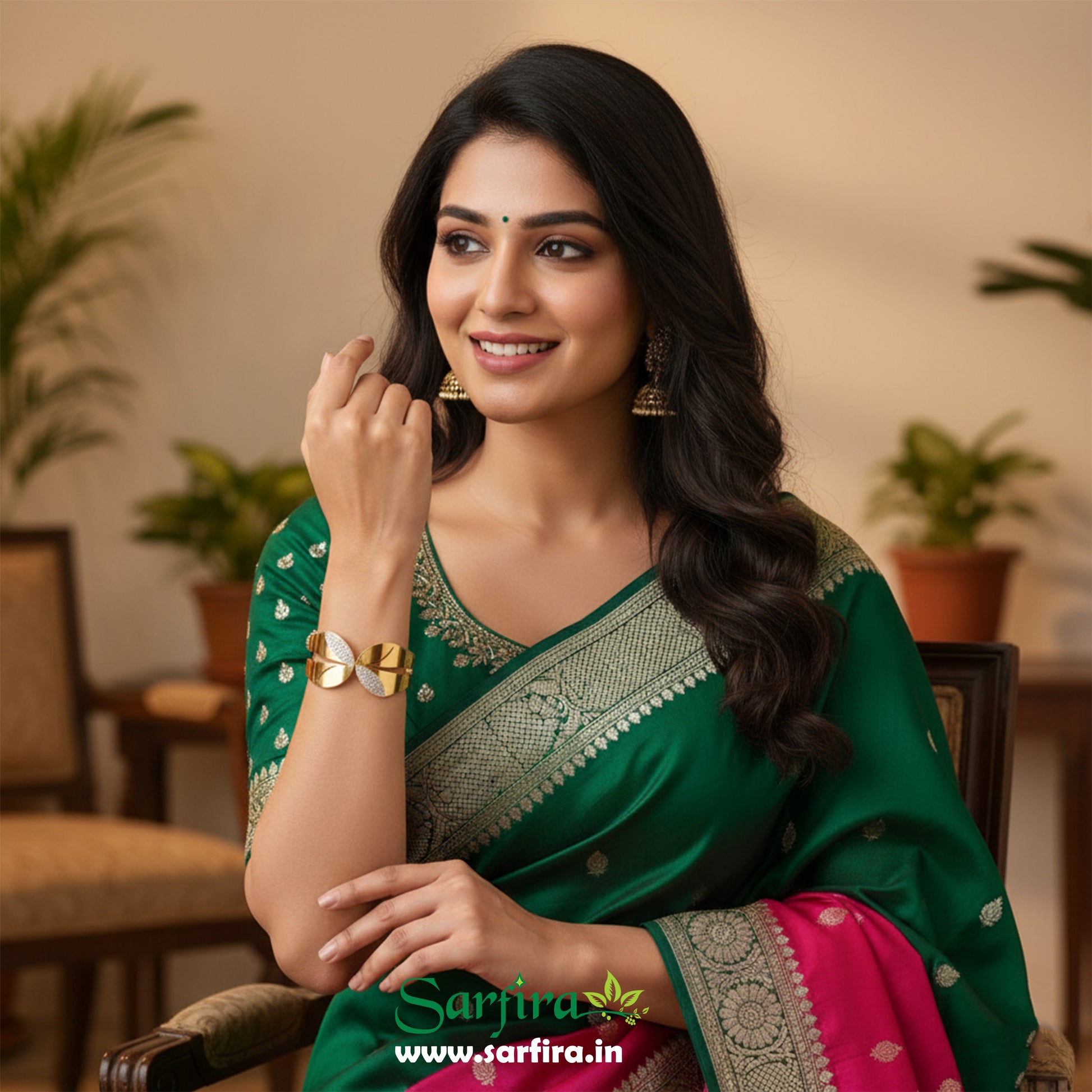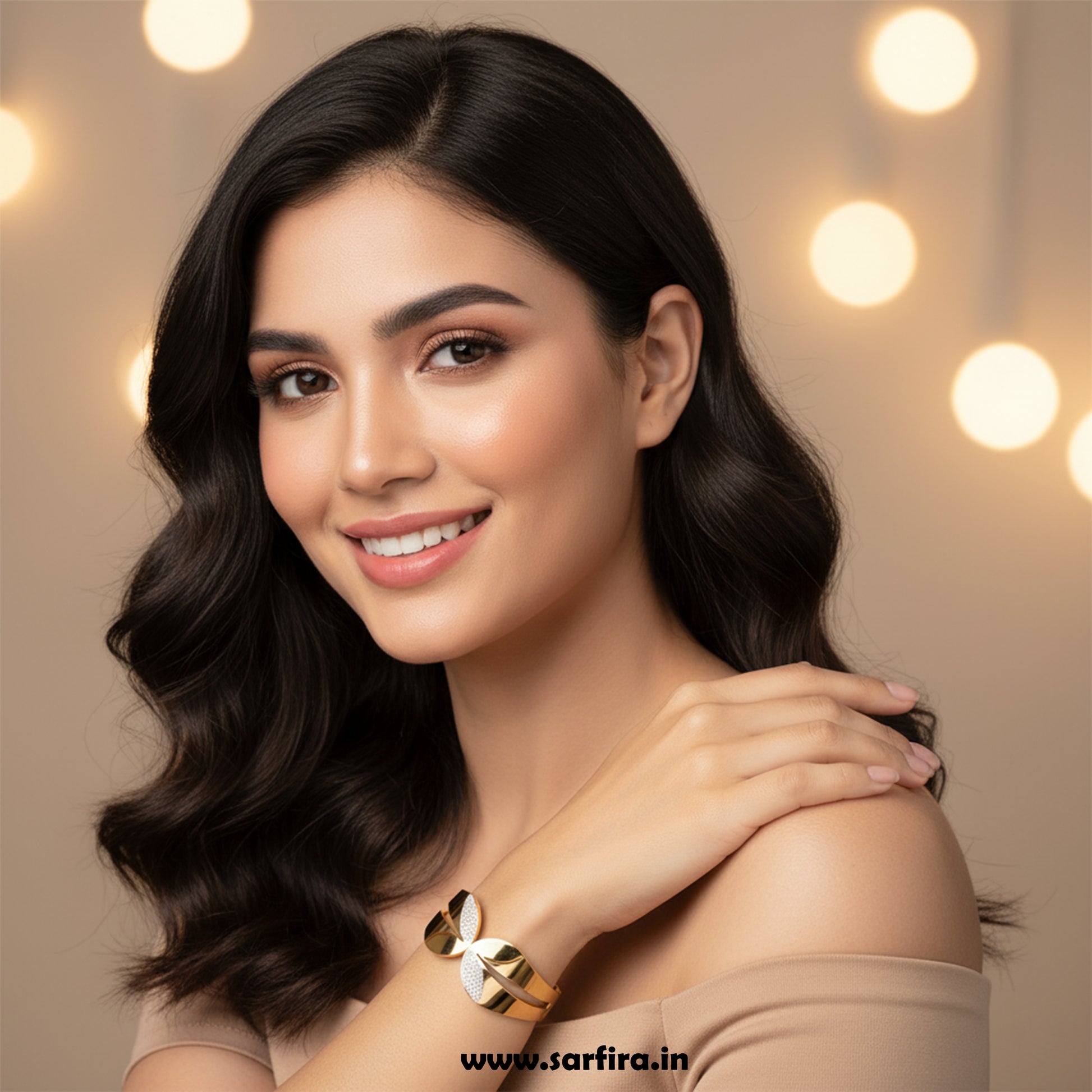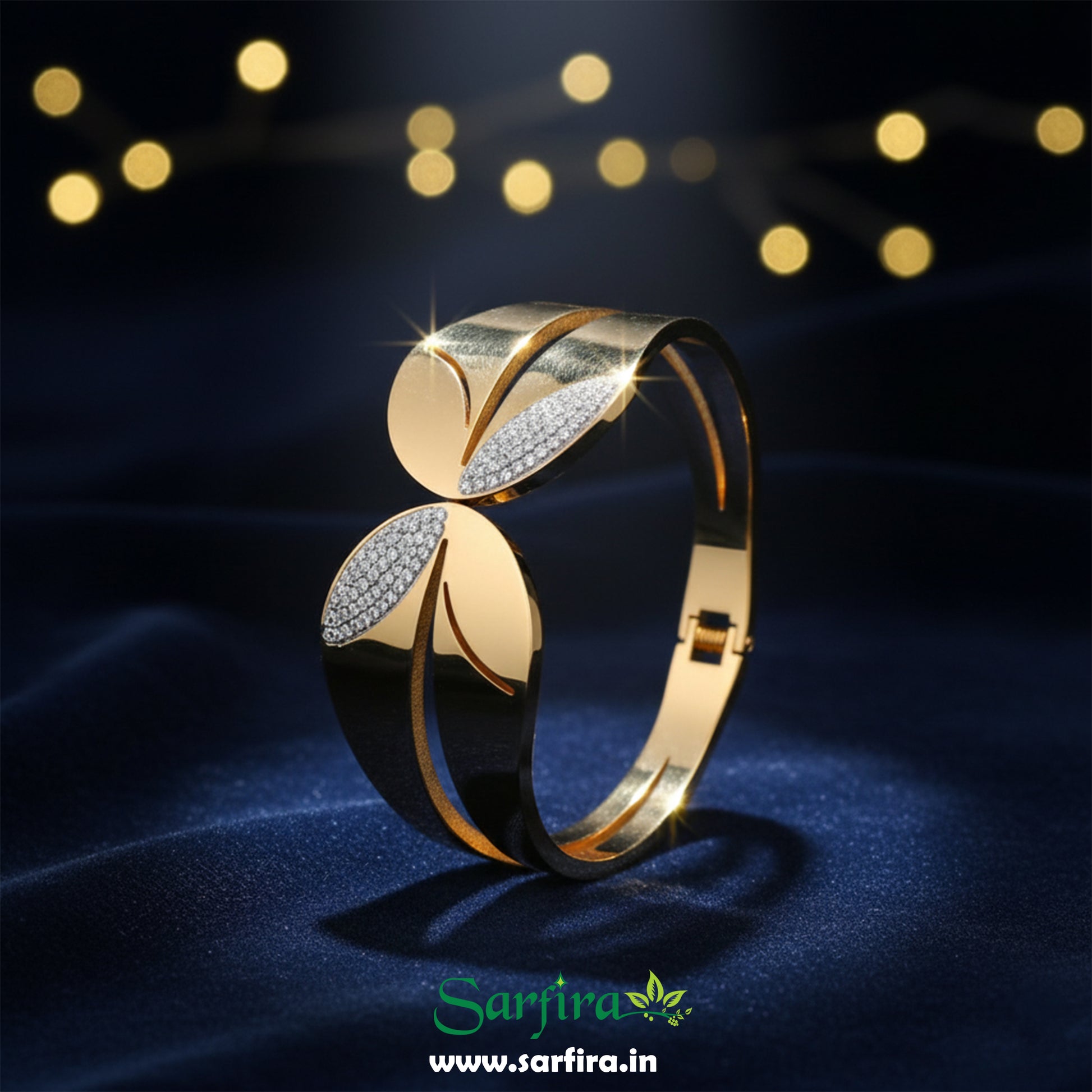 Two Side Leaf Overlap Cuff Bracelet (Kada)