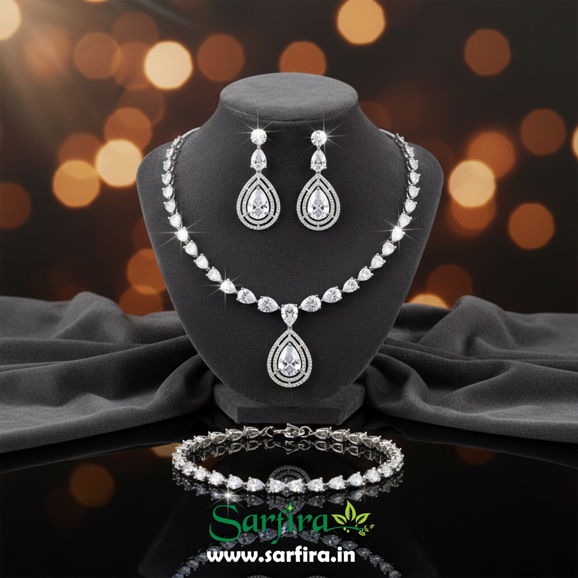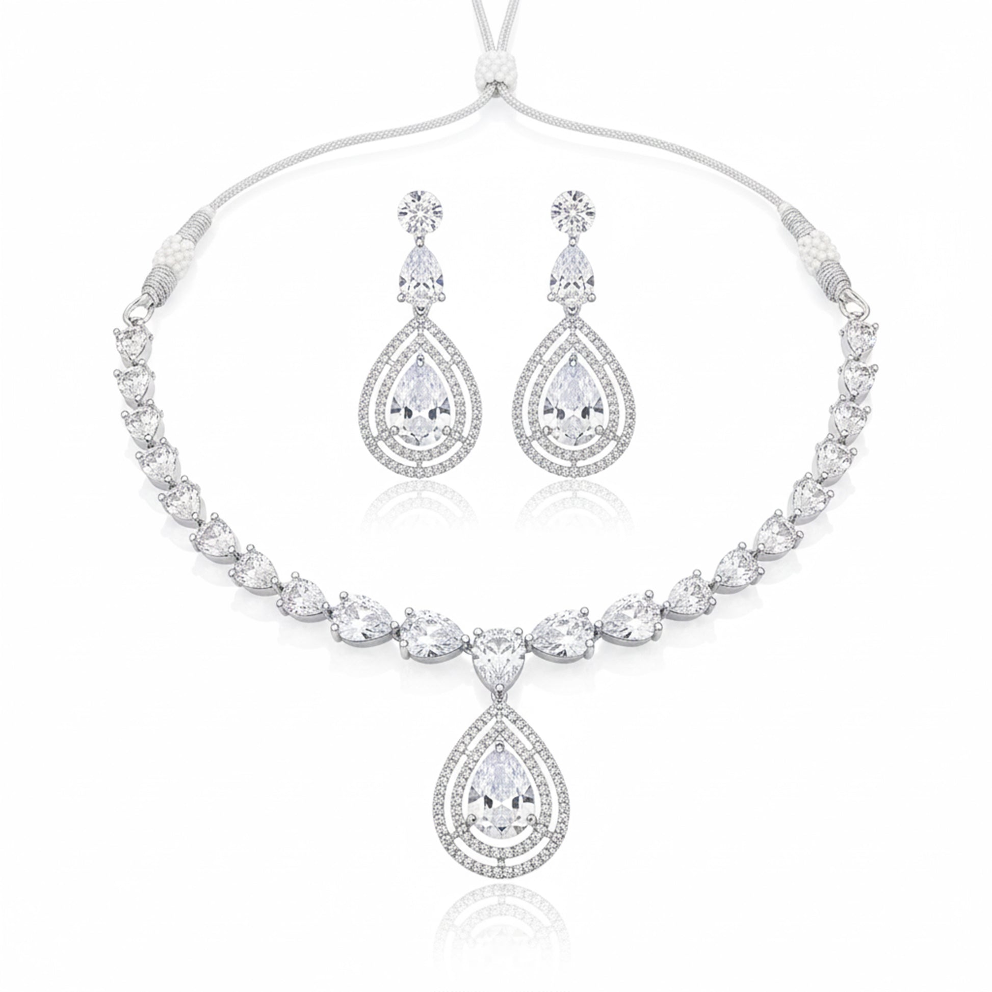 White Stone Bridal Necklace Set with Earrings – Elegant Wedding & Party Jewelry